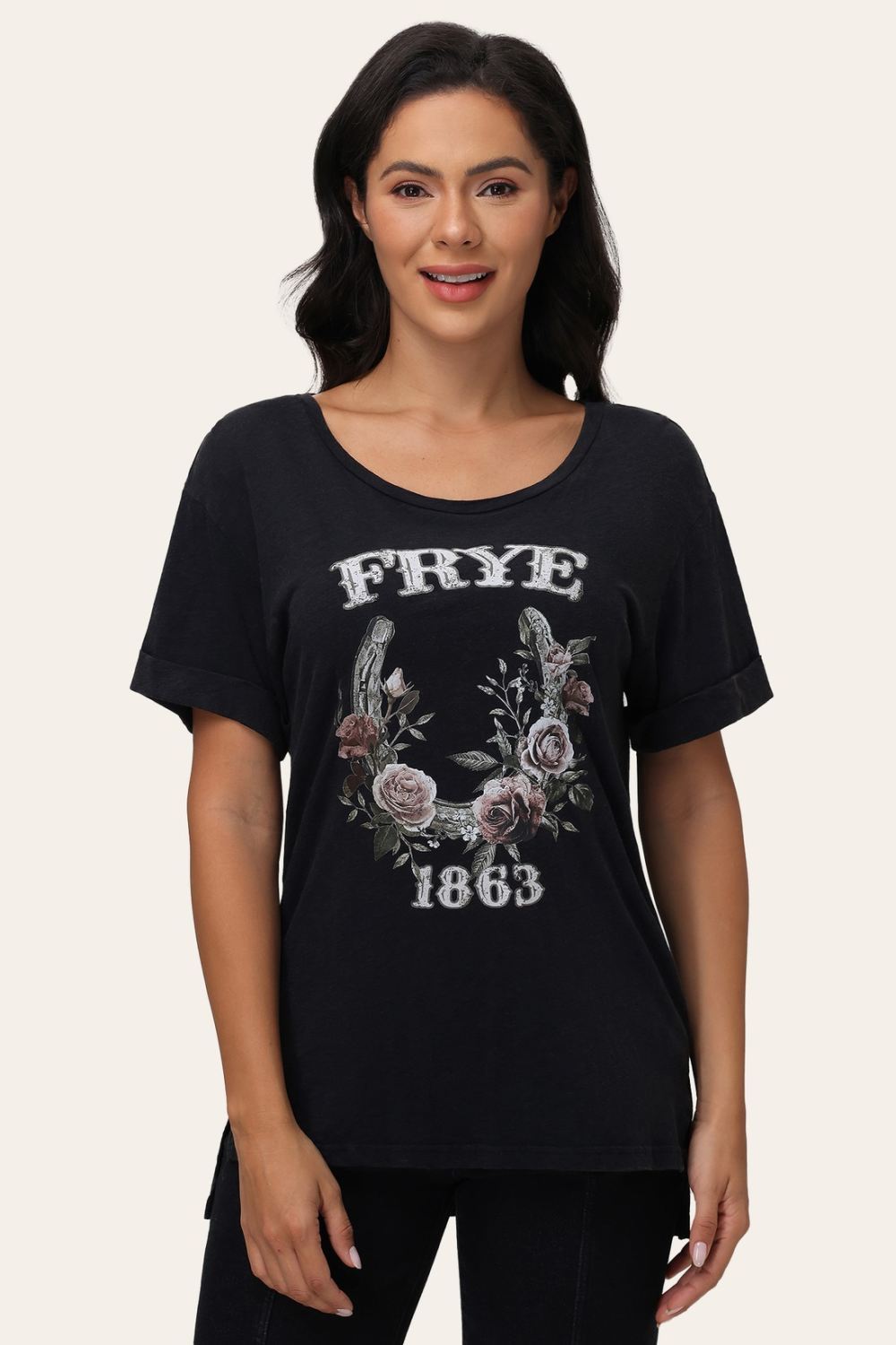 Women's Frye Floral Graphic Rolled Cuff Tee - Floral Graphic Rolled Cuff Tee