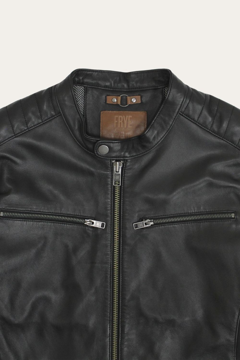 Classic racer-style leather jacket featuring sleek chest pockets with zippers for a touch of modern functionality. This timeless piece boasts a streamlined silhouette and iconic design elements, blending vintage charm with contemporary flair. Crafted from premium leather, it offers both durability and style, making it an essential addition for any wardrobe.