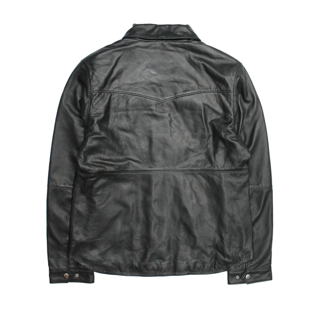 Authentic soft Nappa lamb leather shirt. Need something with sleeves & a touch heavier for the cooler evenings? Not only is this garment very light and simple in its design - and easy to pack - but also features a personalized metal snaps closure, chest pockets, a half-lining, iconic arcuate V-shaped back, and decorative Frye Campus style stitched seams on the front placket.